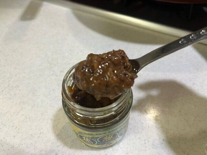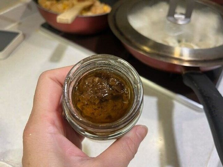 瓶のフタを開けてみました。すごいネギの香り。油もたっぷり入っている感じです。