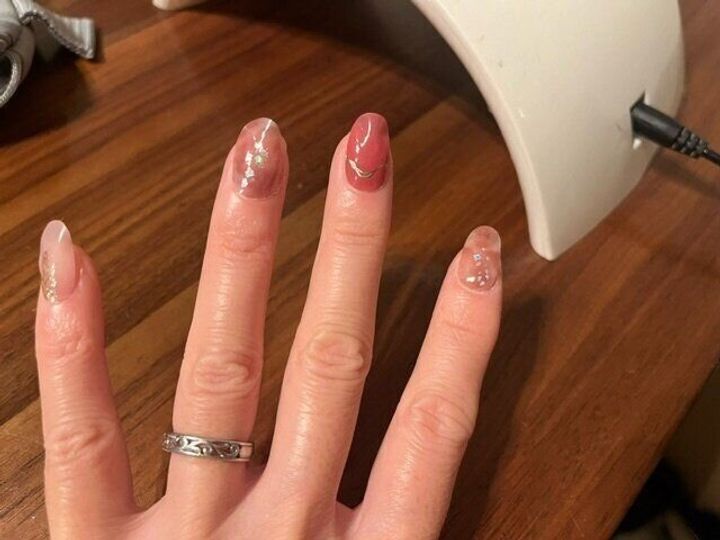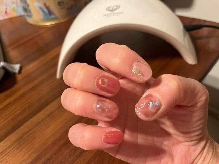 私は食関係の仕事に就いているためネイルができません。でも、キラキラのネイルっていいなと思うこともあります。