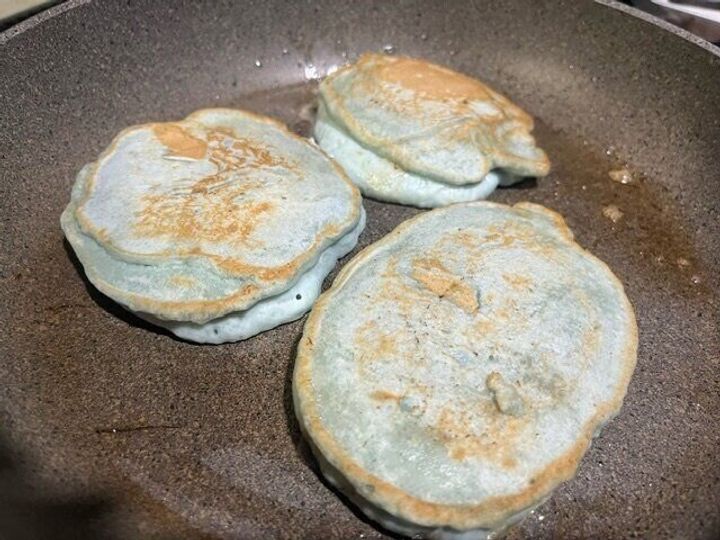とても綺麗な青色のパンケーキが焼けました。