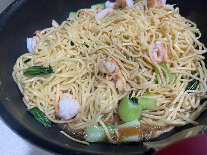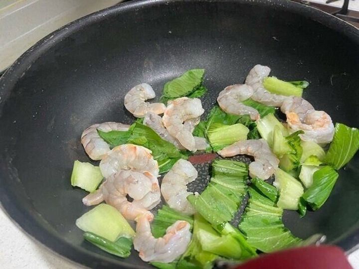 今回は海鮮焼きそばにしたかったので海老とチンゲンサイを具材に入れてみました。