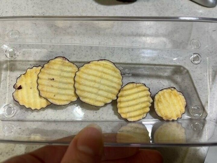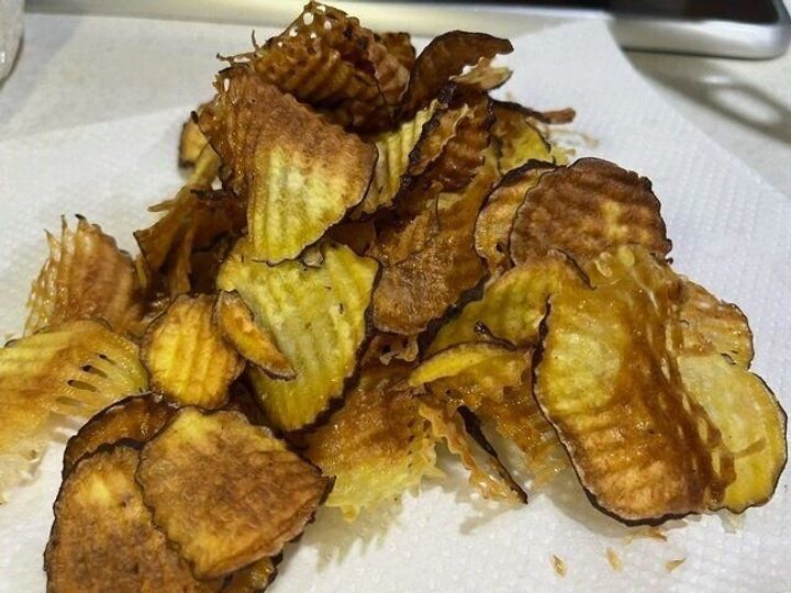 さつまいもを波状にカットして、揚げてみると、美味しそうなさつまいもフライができました!