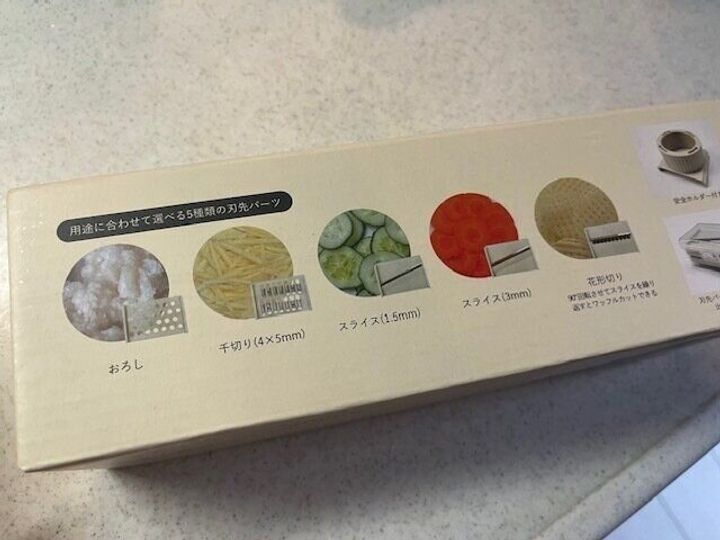 おろし、スライス2種、千切り、花形切りの5種類が出来るスライサーとは…