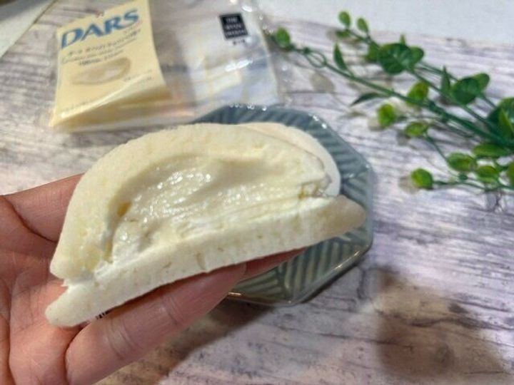 中はホワイトチョコホイップ とガナッシュがサンドしてあり、まさにあのDARSのホワイトチョコ。
