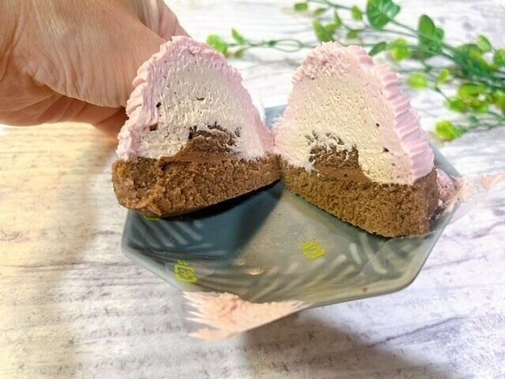 半分のカットもなんだかすごい。よく見ると周りの苺クリームの中身はチョコクリームになっています。