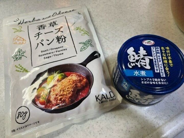 裏面にサバ缶にかけるだけ!と記載があるので早速家にあるサバ缶を使って作っていきます。