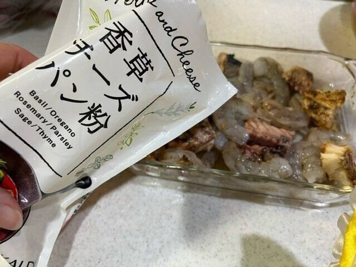 香草チーズパン粉をふりかけただけでハーブの香りがして、とても良い香り。