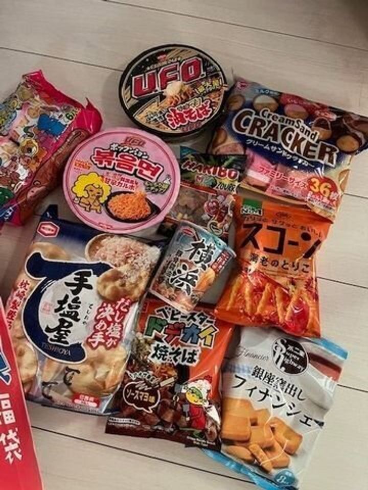 カップラーメンからしょっぱい、甘い系のお菓子まで盛りだくさん。