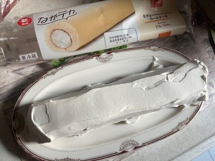そう思ったので少しだけアレンジしてみました。この1本のロールケーキの周りに泡立てた生クリームを塗りました。