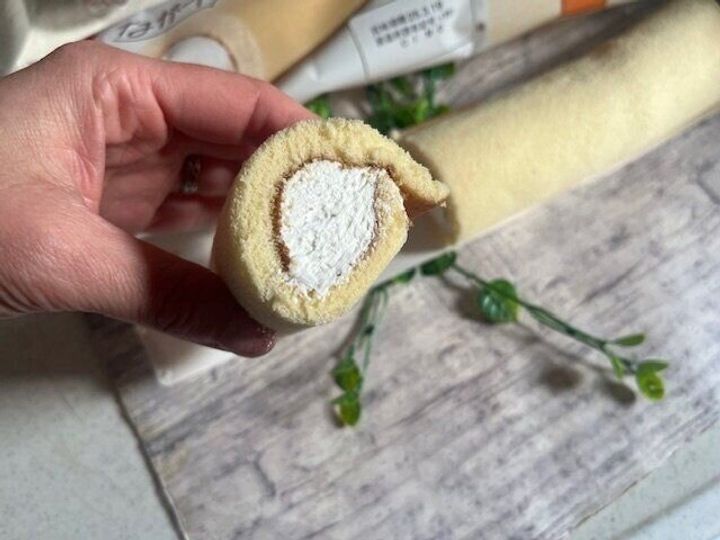 カットしてみました。ロールケーキはひとまきで、中にはたっぷりのホイップクリームが入っています。