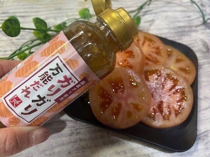 スライスしたトマトにかけるだけ。食べてみると…。本当によく合う。美味しい。