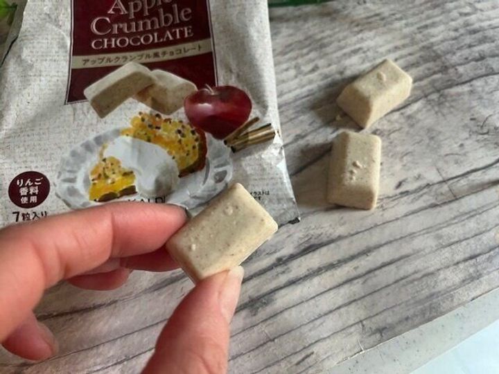 今回の「アップルクランブル風チョコレート」ひとくち食べただけで贅沢感も味わえ、
