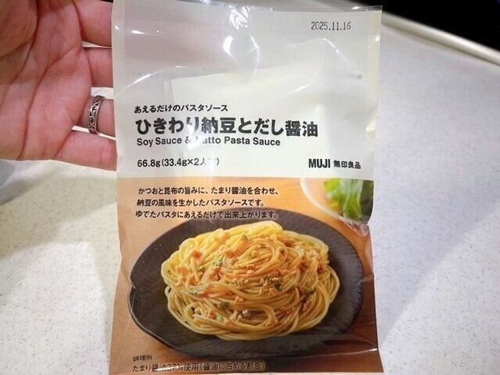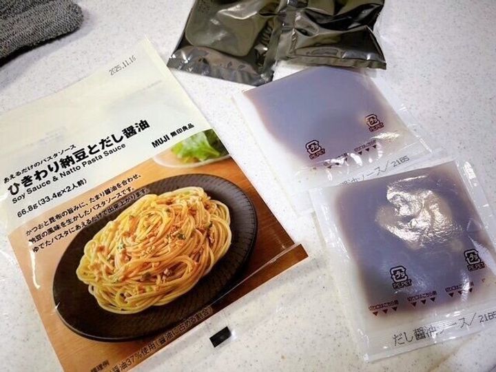 【無印良品】あえるだけで簡単に美味しく!あえるだけのパスタソース、ひきわり納豆とだし醤油