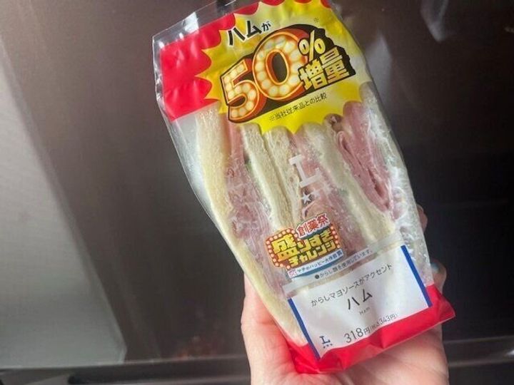 ハムサンド」(税込343円)通常の「ハムサンド」に比べてハムの量を約50%増えています。