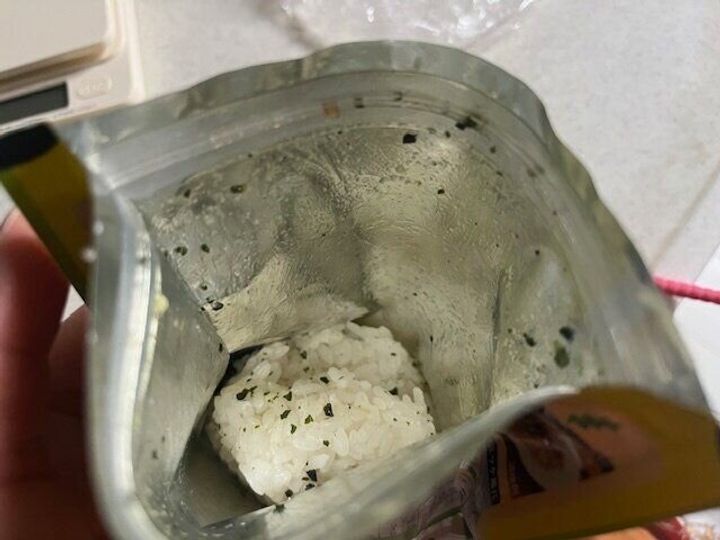 この袋のなかに少量のごはんを入れてしまうのです。小さいおにぎり程度。