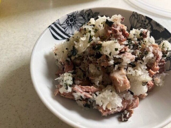 すると、大根おろしの汁を吸ったわかめが少しだけ戻りサバの水煮缶とちょうど良く合わさります。
