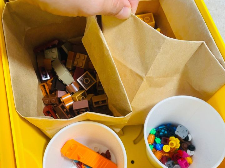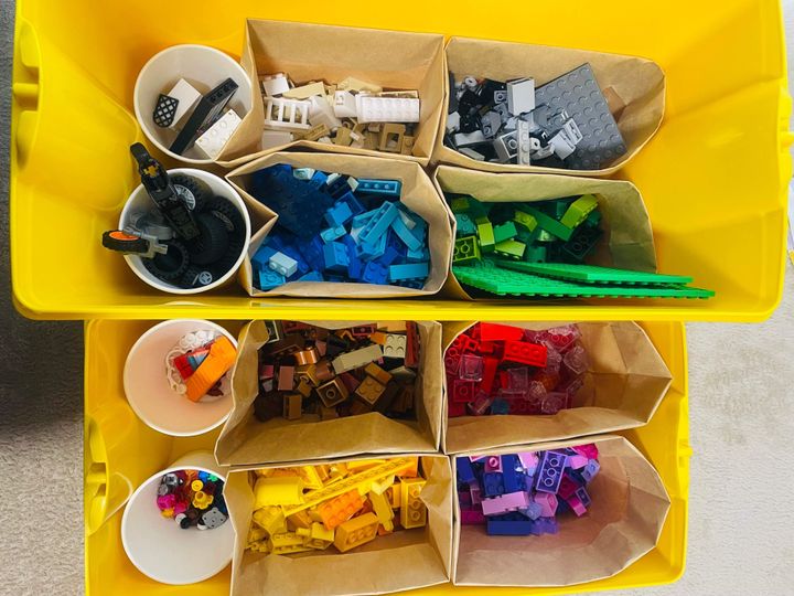 子供との話し合いで、今あるLEGOのボックスは手放さずに使用しながら、家にあるモノで!