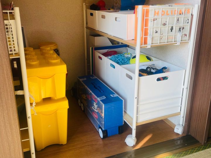 おもちゃなどは、使用頻度や種類ごとに分けてから収納ボックスに保管しておくと、子供の片づけがしやすくなります。