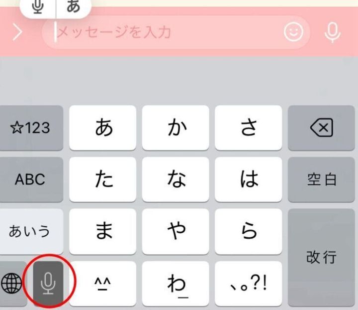やり方は簡単!iPhoneの方の場合ですが、普段のキーボードの左下にマイクのマークがあります。