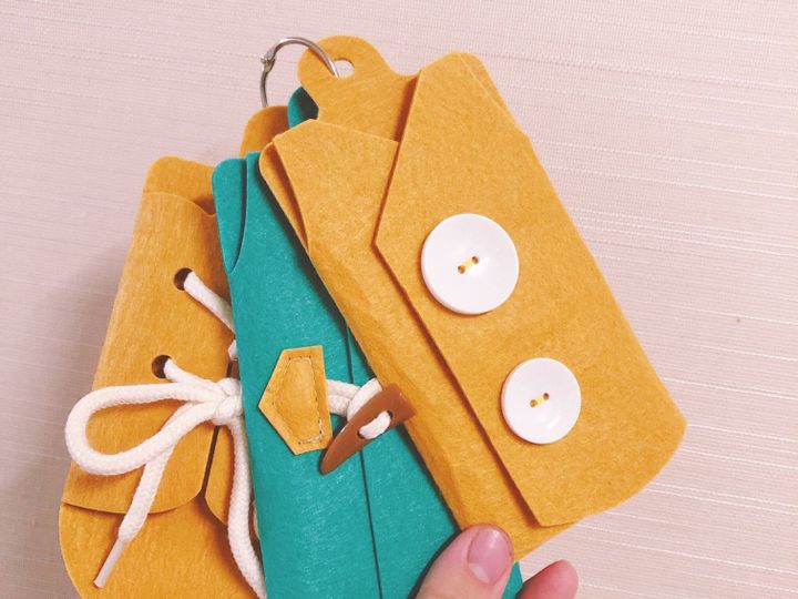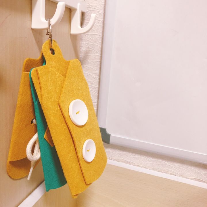 本体はフェルト生地で、くつひものような紐を結ぶ練習ができます。