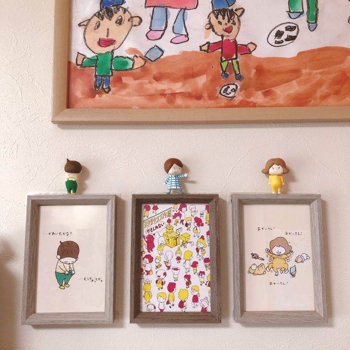 アクリルフォーム両面テープ+マスキングテープは壁に穴を開けることなく、壁紙も傷付けないので賃貸の方にもオススメな飾り方です♪