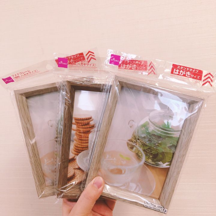 ダイソーのフォトフレーム(細枠、ハガキサイズ)です。