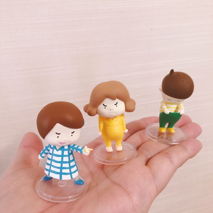 全5種類のうち3種類が当たったのですが、左から「わごむちゃん」「なつみちゃん」「おしっこちょっぴりもれたろう」です。残りの2つ(「あきらくん」と「おしっこけっこうもれたろう」)も欲しくて、フリマアプリで買っちゃいました(笑)。