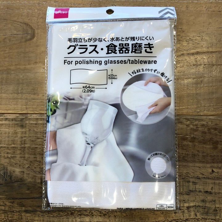 私はカフェを経営しておりますが食洗器がないので、洗ったものをすぐに使い回したい時に拭きムラがなくなる食器拭きを探しており、やっと見つけたのが身近にあるダイソー。