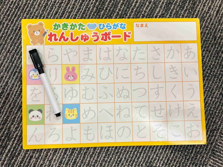 【キャンドゥ】100円で書いて消せるひらがなれんしゅうボード!