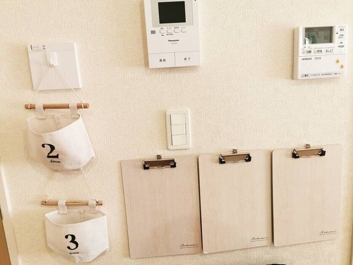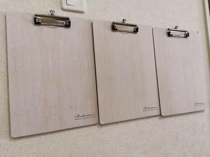 そこでダイソーのバインダーを壁に取り付け、プリント掲示板にしました。