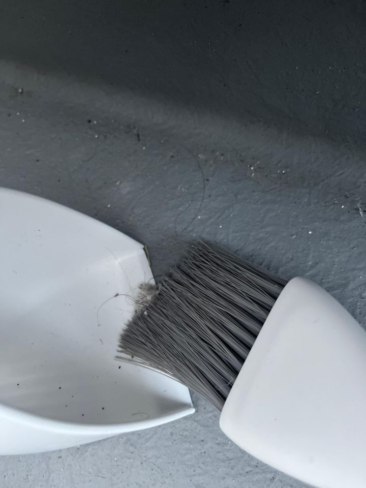 ②小ぼうきでゴミを取ります。こびりついたゴミはヘラ(ない方はいらないカードでもOK!)で取ります。排水口等細かい部分は割り箸で。