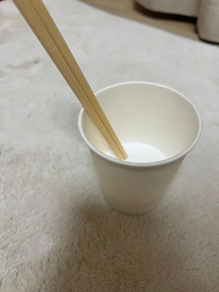 紙コップに重曹:工作用水性ペイントを1:2で入れます。