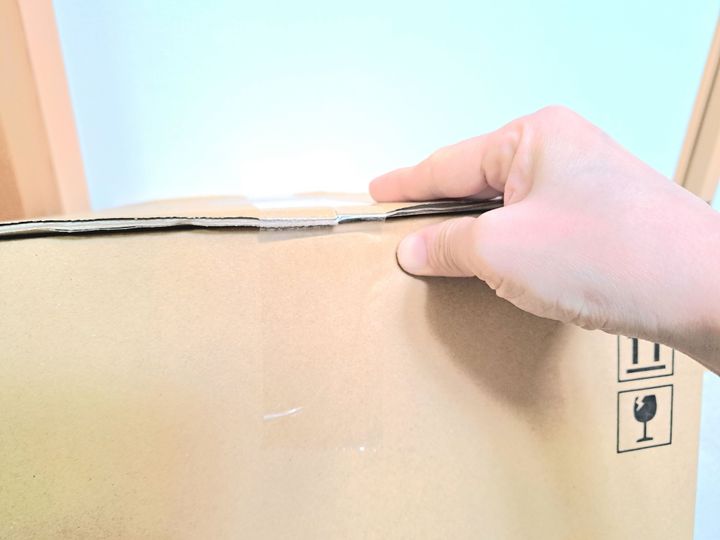 ビリッと簡単に剥がれるので、あとはビーッとテープを全部剥がしてしまえば、とても簡単に開梱することができます。