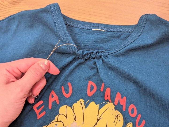 また、軽く引っ張ることでギャザー感が弱まるので、男の子アイテムにも使える技!わが家でも、よれてきた体操服の首元はこの方法でアレンジしています。