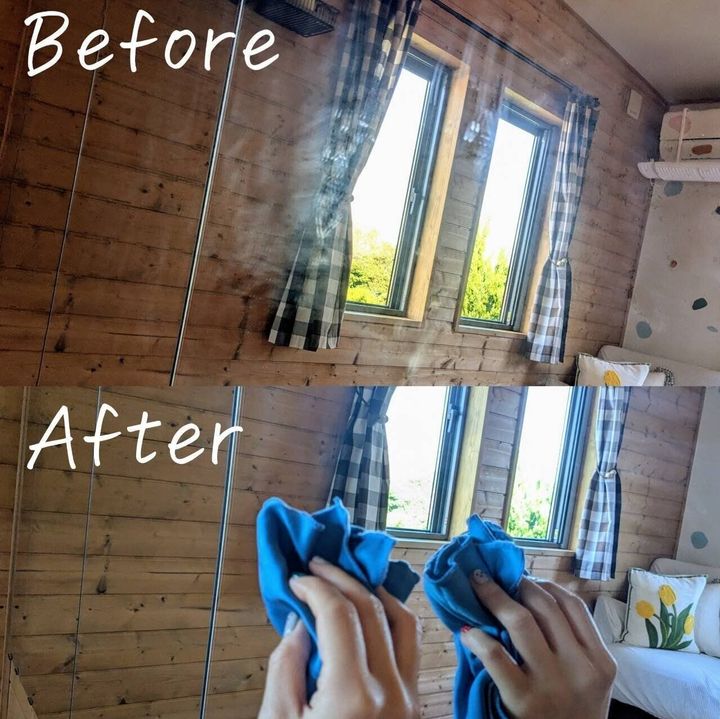 実際に家中の「窓ガラス」や「鏡」を洗剤なしで拭いてみたところ、一度拭きで子どもたちの手垢をキレイに消すことができました。拭き跡や繊維残りは一切なし!