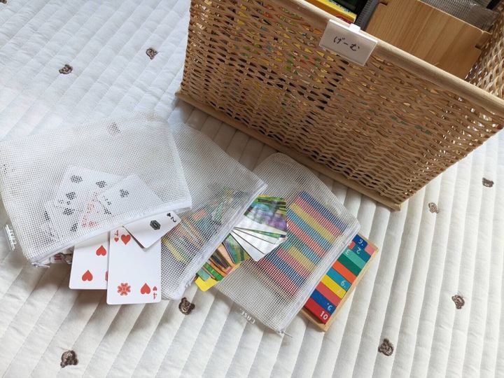 我が家では、トランプやカードゲームなどの細かいおもちゃはファスナーケース収納にしています。