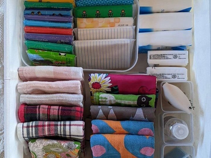 ハンカチはついつい増えてしまいガチなアイテムの代表選手。これ以上増やさない、もう2度とリバウンドさせない為にも、仕切りを活用した「指定席収納」がオススメ!是非、お近くのセリアを覗いて見てくださいね。