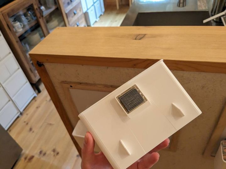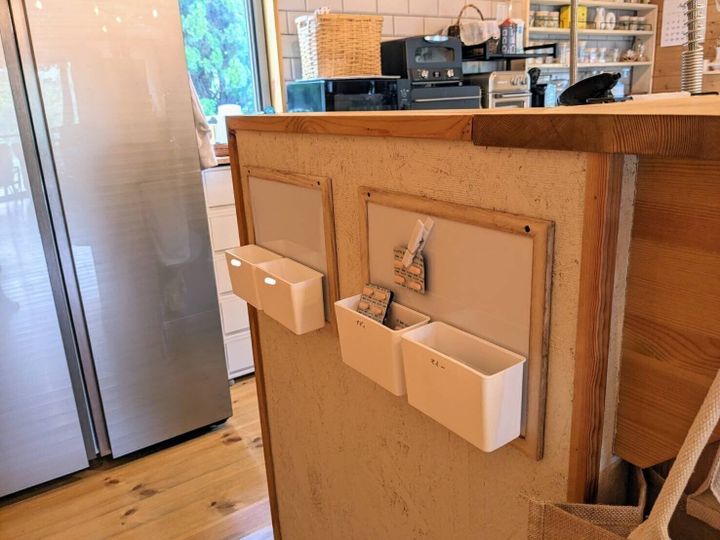 わが家の場合、キッチンカウンター側面に、ホワイトボードと組みわせて設置しています。