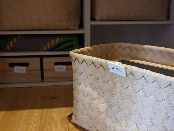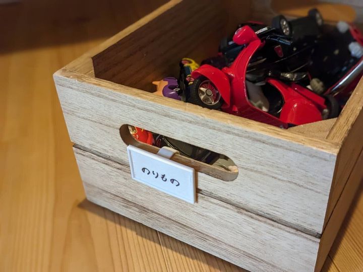 収納ケースに直接貼ったり、紐を使って取り付けるのが主流の「ラベル」ですが、私が最も使い勝手が良いと感じたのが「プレート」タイプです。