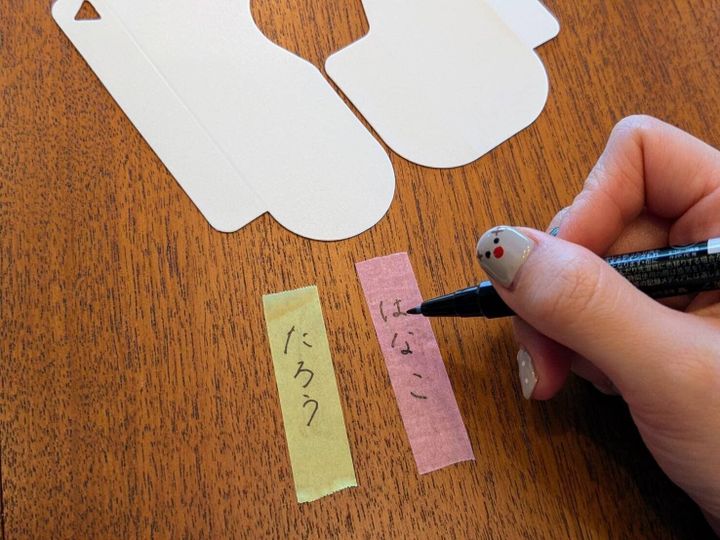 また、人別の場合は、マスキングテープの色にもこだわっておくとより便利!筆者宅の場合、長女は「イエロー」、次女は「ピンク」と各々の好きな色のマスキングテープで統一しています。自分のモノが「色」で識別ができるので、まだ字の読めない小さなお子さんにもオススメのアイデアですよ。