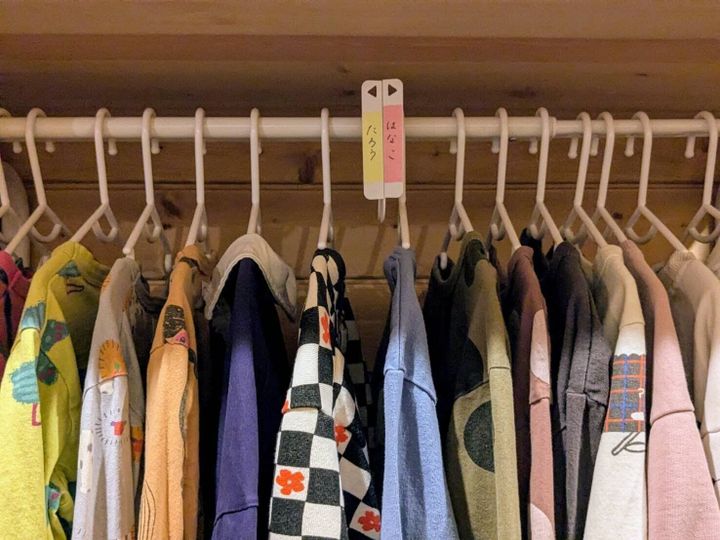 「トップス」、「アウター」、「ボトムス」などモノ別に仕切るもよし、「長男」、「長女」、「パパ」、「ママ」のように人別で仕切るもよし!ポールを使った収納であれば、どんなクローゼットでも活躍すること間違いなしの汎用性の高いアイテムですよ。