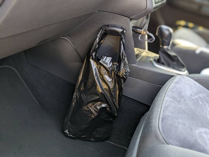 【100均】「色」がポイント!セリアのポリ袋で“簡単快適“使い捨て車内ゴミ箱