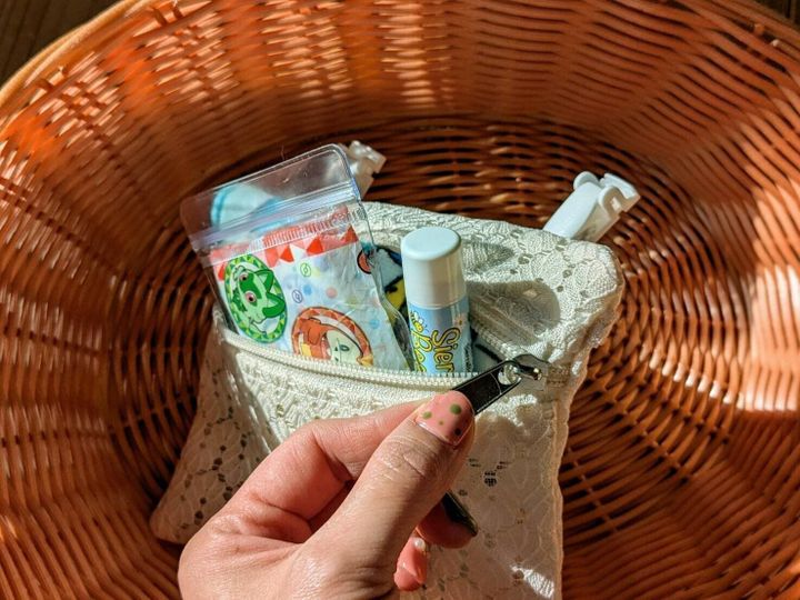 筆者も色々なデザインのモノを試してきましたが、マジックテープ式は強度に心許なさがあり、開閉を繰り返すうちに破れて縫い直した経験も。また、ふたなしタイプは中身を取り出しやすいメリットはあるものの、リップクリームなどの小物が飛び出し、無くしてしまったこともあります。
