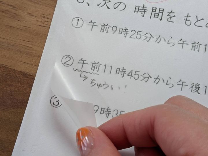しかし実はこれ、子どもの宿題の丸つけに便利!親が丸つけをするのが一般的な令和の時代だからこそ、プリントやドリルの上に貼って、ヒントやコメントを残しておくのに使えるんです。