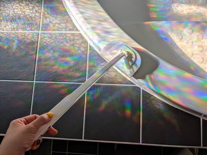 浴槽を磨くための「バススポンジ」といえば、分厚くて少し大きめのモノを想像しますよね。一方で、セリアのバススポンジは、薄くて柄が長いのが特徴です。実はこれ、長すぎず、短すぎず、力を入れやすい絶妙な長さなんです!