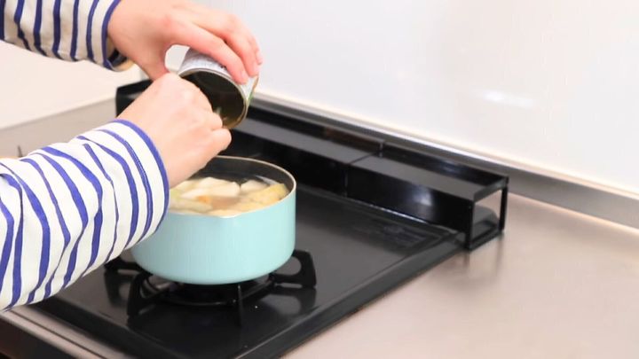サバ缶を利用するときは、汁も一緒に入れて丸ごと栄養を摂取しましょう。