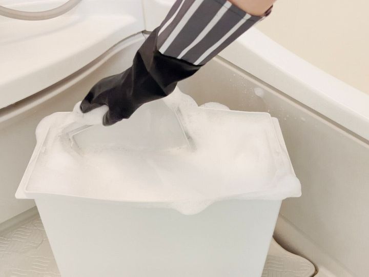今回のゴミ箱掃除にはこの「オキシ漬け」の方法を行います。つけ置きだけでゴミ箱の「汚れ」と「ニオイ」をごっそり落とすことができますよ。