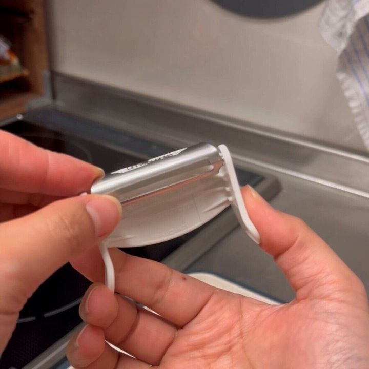 このピーラーは刃の上部が反り返った返しのある形状をしているんです。