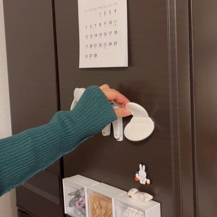 磁石がつくところならどこでもくっつけて収納できるのでお好きな場所につけてね。