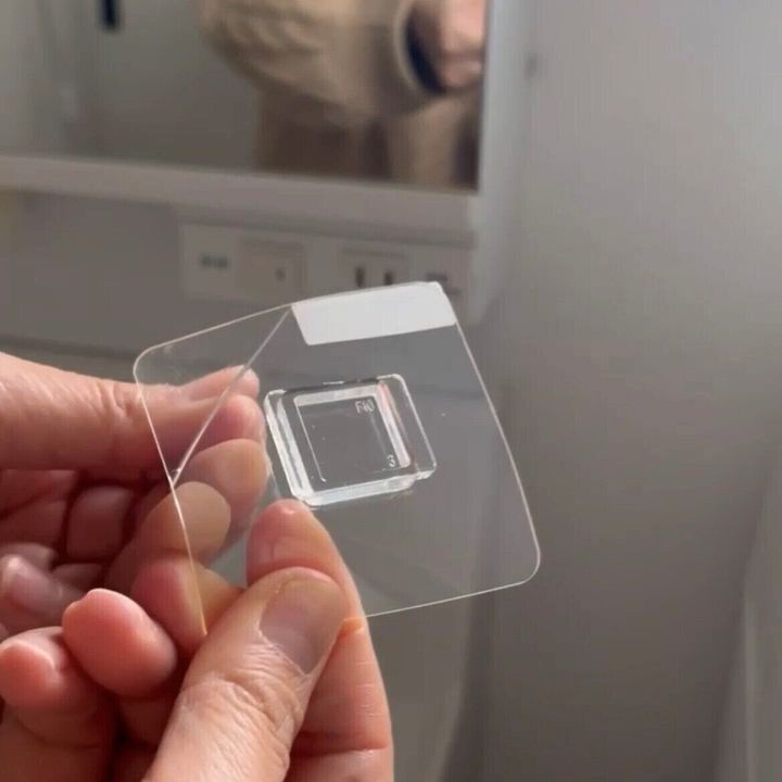 歯ブラシを収納したときに扉に当たらない位置に貼ってね。
