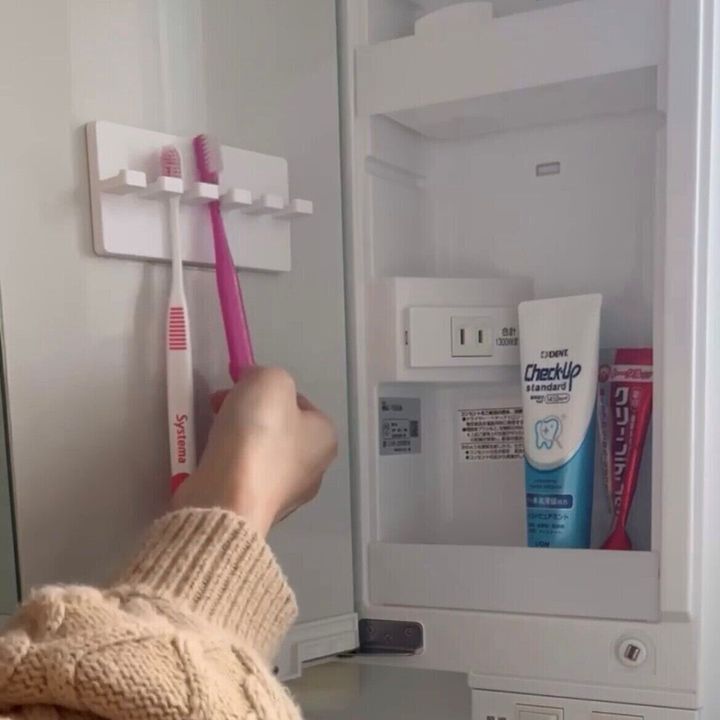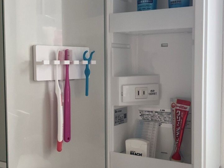 洗面所にもともとついていた歯ブラシホルダーを使うと、